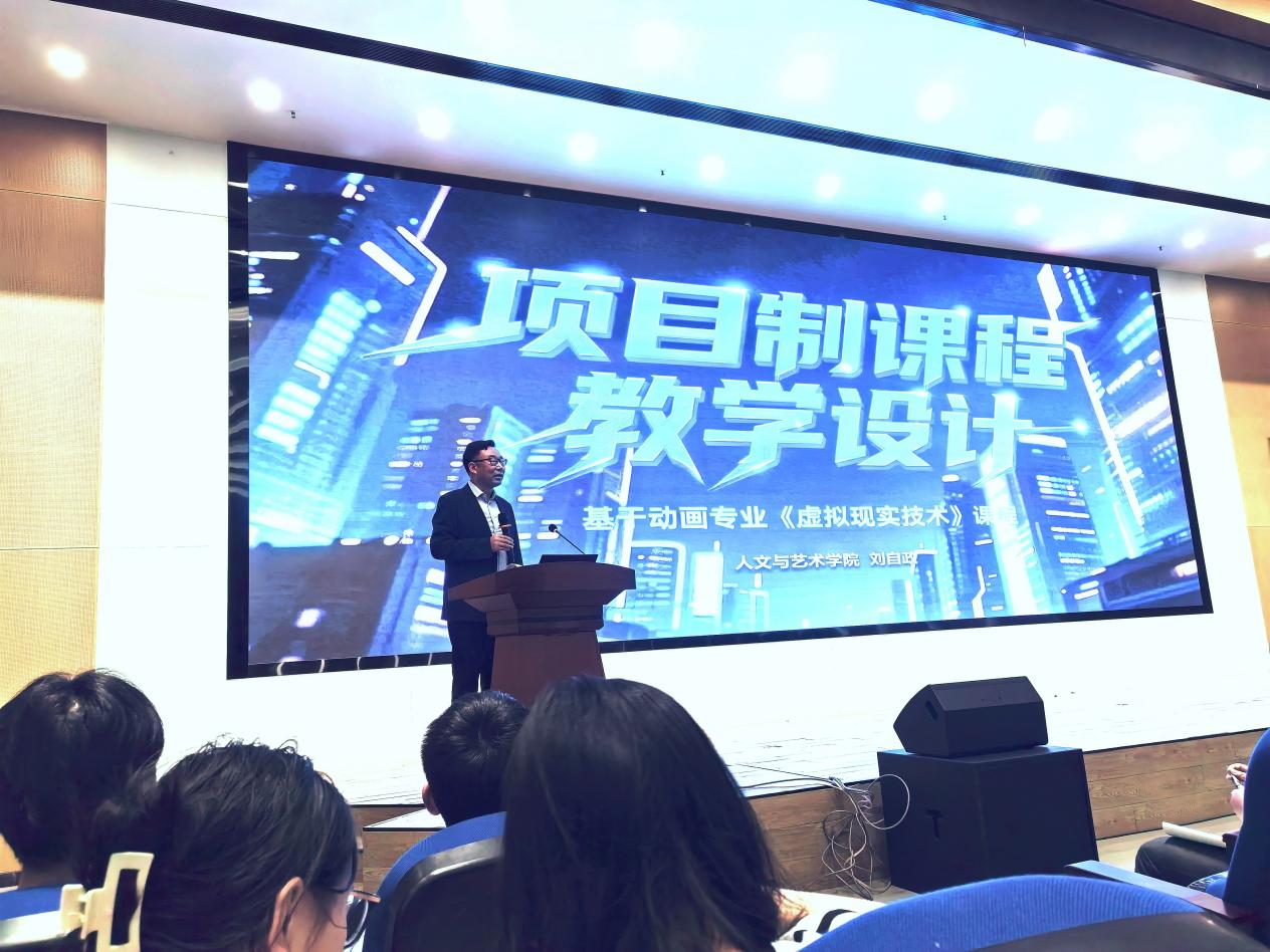 为持续推进我校项目制课程教学改革,提升项目制课程教学质量,4月15日,由人文与艺术学院刘自政老师主讲《虚拟现实技术》项目制教学公开课在图书馆报告厅举行。本次公开课由质量办主办、人文与艺术学院承办,全校近200名教师和学生共同参与。